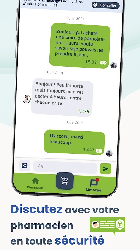 Brauchen Sie Rat? Eine Frage zu Ihrer Gesundheit? Verwenden Sie Instant Messaging, um einfach und sicher mit Ihrer Apotheke in Ihrer Nähe zu kommunizieren! Dank EASYPharm unterstützt Sie Ihr Apotheker bei ALLEM!