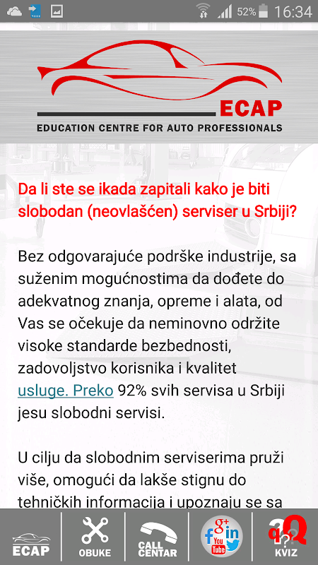 Imate problem sa rešavanjem kvara na automobilu? Ne gubite vreme, pozovite ECAP Call Centar, gde su Vam usluge tehničkih trenera na raspolaganju svakog radnog dana od 08h do 16h. Procenat rešenih kvarova je 100%