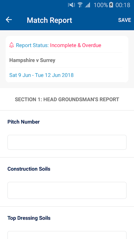 EZB Match Reporting-App für die Berichterstattung über die Leistung von Spielfeldern, Spielern und Schiedsrichtern