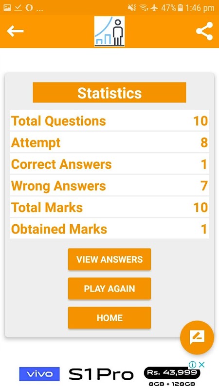 2. Detailed Result at the end of every test with obtained score.