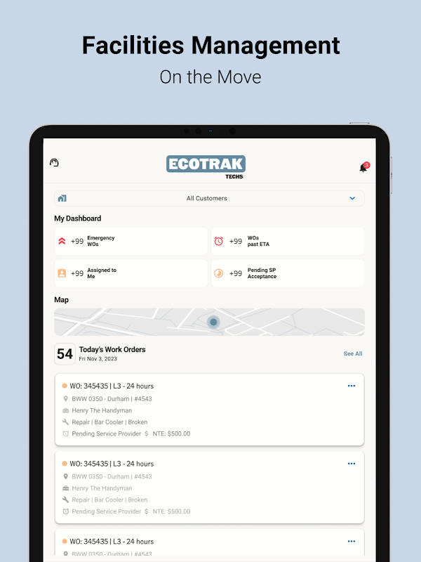 Ecotrak Techs stellt Außendiensttechnikern die Tools zur Verfügung, die sie benötigen, um Arbeitsaufträge effizient abzuwickeln, Angebote zu erstellen und Rechnungen einzureichen – direkt von ihrem Mobilgerät aus. Keine Tabellenkalkulationen, endlosen Telefonate oder veraltete Software mehr. Optimieren Sie Ihr Service-Management-Erlebnis mit einer schnellen, modernen und benutzerfreundlichen App.