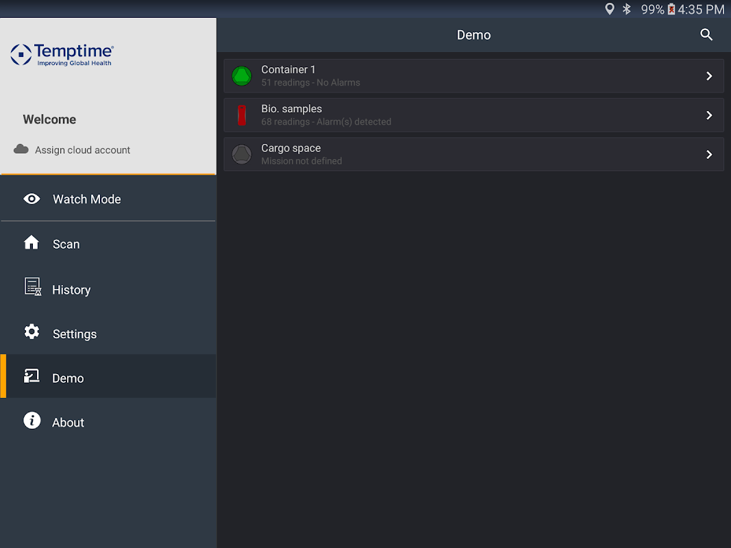 • Update-Daten auf der Temptime Wolke mit einem einfachen Tippen an verschiedenen Punkten während des Versands Ihrer Smartphone oder Tablet Internetverbindung
