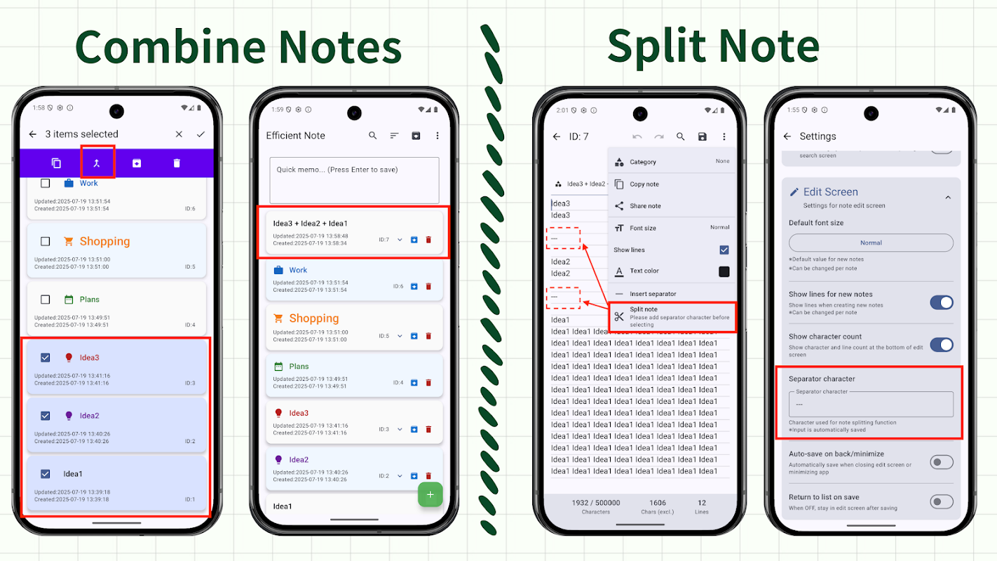 - Notizen teilen: Lange Notizen einfach mit Trennzeichen wie "---" aufteilen