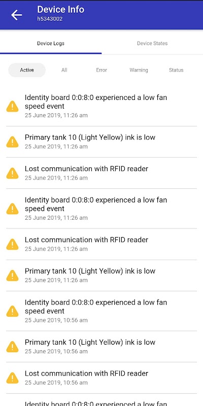 Mit der mobilen App EFI Go können Administratoren und Mitarbeiter in der Druckproduktion den Status mehrerer EFI Inkjetdrucker auf ihren Smartphones oder Tablets überwachen.
