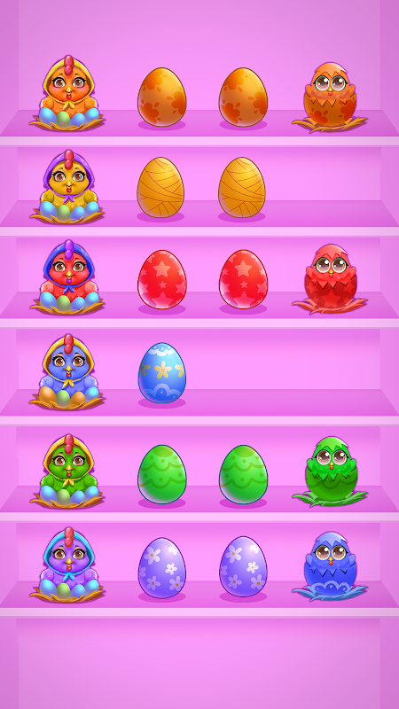 Die Henne braucht deine Hilfe! Egg Puzzle ist ein lustiges und süchtig machendes Spiel. Sie müssen die Eier der gleichen Farbe wie die Henne in der gleichen Reihe anordnen, um die Küken zu erhalten. Das Spiel erfordert Konzentration, Intelligenz und Strategie, um die Levels bestehen zu können.