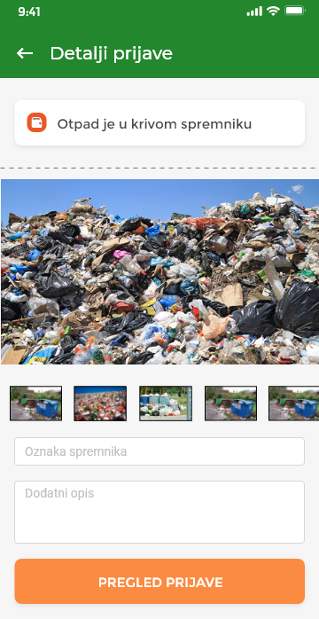 EKO Prijava je aplikacija preko koje RADNICI poduzeća mogu vršiti prijave korisnika koji ne ispunjavaju svoje redovne obaveze pri postavljanju ili upravljanjem svojih spremnika. Aplikacija ima jednostavan i brz sustav koji omogućava brzinsku prijavu uz točnost informacija kao i arhivu istih. Korisnik aplikacije mora samo uslikati spremnik dok će aplikacija automatski zapisati lokaciju (adresu), datum i vrijeme fotografije, razlog prijave i na kraju će zabilježiti i tko je poslao prijavu.