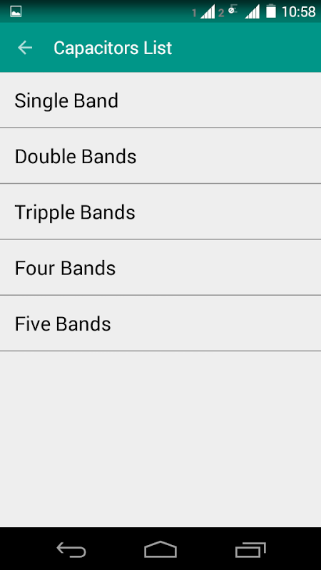 * Color Coding values for different types of color bands for capacitors and resistors.