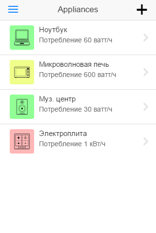 Приложение для подсчета расхода электричества дома и подсчета расходов по электричеству. Данная программа подходит для домашних целей и включает в себя большую часть бытовой техники и домашних приборов, а также есть возможность добавить свои устройства и посмотреть сколько тратиться электричества в день и в месяц. Можно установить цену и посчитать сколько обходиться электричество в день и в месяц.