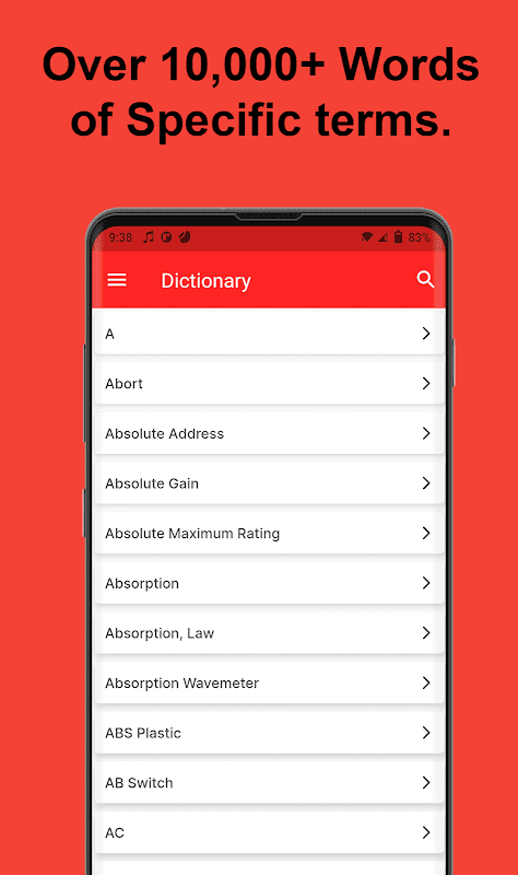 - Over 10000+ word dictionary of electronics terms.