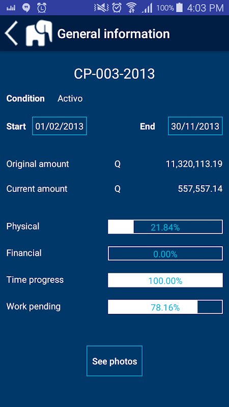 Es ermöglicht die Überwachung und Überwachung von Projekten, unabhängig von ihrer Natur. Neben anderen Merkmalen ermöglicht die Erfassung des Fortschritts und georeferenzierte Online-Fotos.