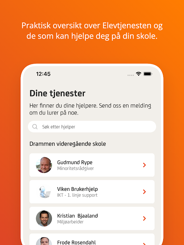 In der App können Sie häufig gestellte Fragen lesen und erhalten Antworten zu Körper und Gesundheit, Wohnverhältnissen, Beruf und Ausbildung und mehr. Der Service ist für Studierende kostenlos. Sekundarschulen, die Kopling Elevtjenesten verwenden, bieten auch einen einfachen Kontakt zu den Ansprechpartnern an der Schule, der Sie angehören. Sie können wählen, ob Sie beim Chatten mit Kopling Elevtjenesten anonym bleiben möchten, aber denken Sie daran, dass es für uns oft einfacher ist, Ihnen zu helfen, wenn wir wissen, wer Sie sind.