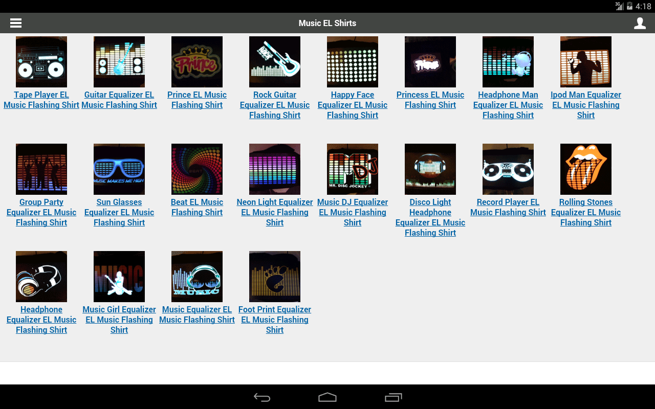 Allow user to Browse, search, get Electro Flash sound activated product details, in various categories ranging from EL Shirts & caps
