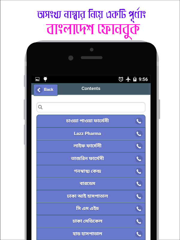 One can search the internet and get information about causes, symptom and how to prevent those diseases. Along with that, you will get contact details (such as address, phone number etc) of a hospital in Bangladesh to make immediate contact with the hospital in your nearest area or any other area in Bangladesh. But for that, you must have a computer or smartphone with an internet connection. But in this app, you’ll have access this online information offline. The following emergency phone numbers you will get here: