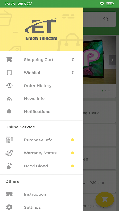 Laden Sie die offizielle Emon Telecom App auf Ihrem Telefon für einfachen Zugang zum größten Kleinanzeige Handy-Shop in Galachipa.