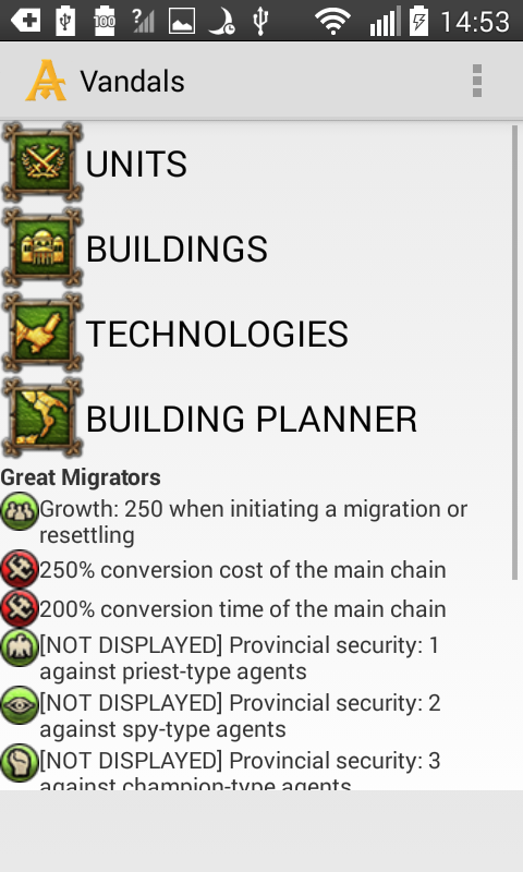 Die Anwendung bietet verschiedene Informationen und Werkzeuge für die Spieler in Total War: Attila. Es ist nicht ein Wiki, werden die Daten aus dem Spiel an sich genommen.