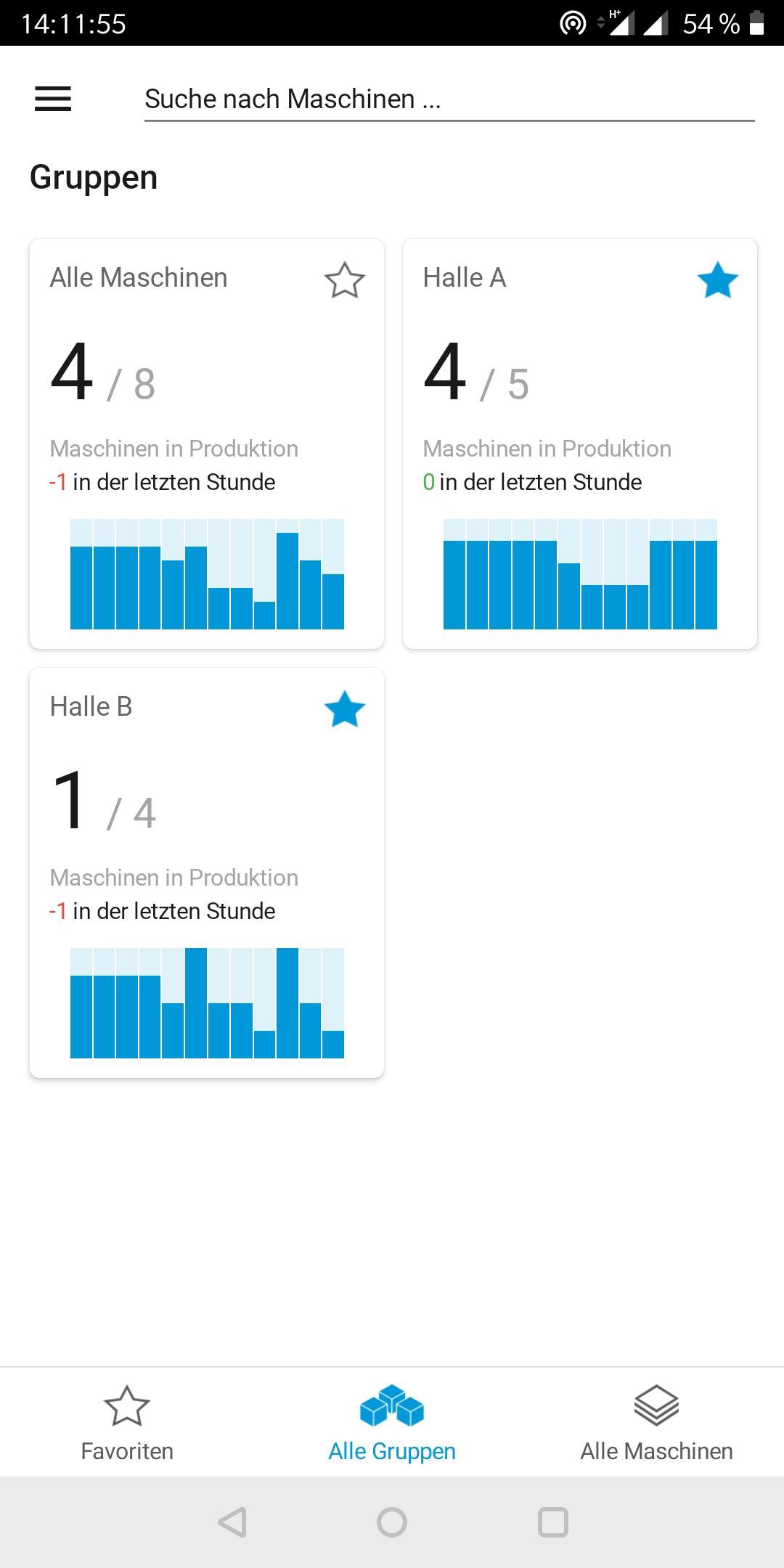 •Überblick über den Gesamtzustand der Produktion (bei Bedarf getrennt nach Hallen, Maschinengruppen oder anderen, selbst definierten Filterkriterien)
