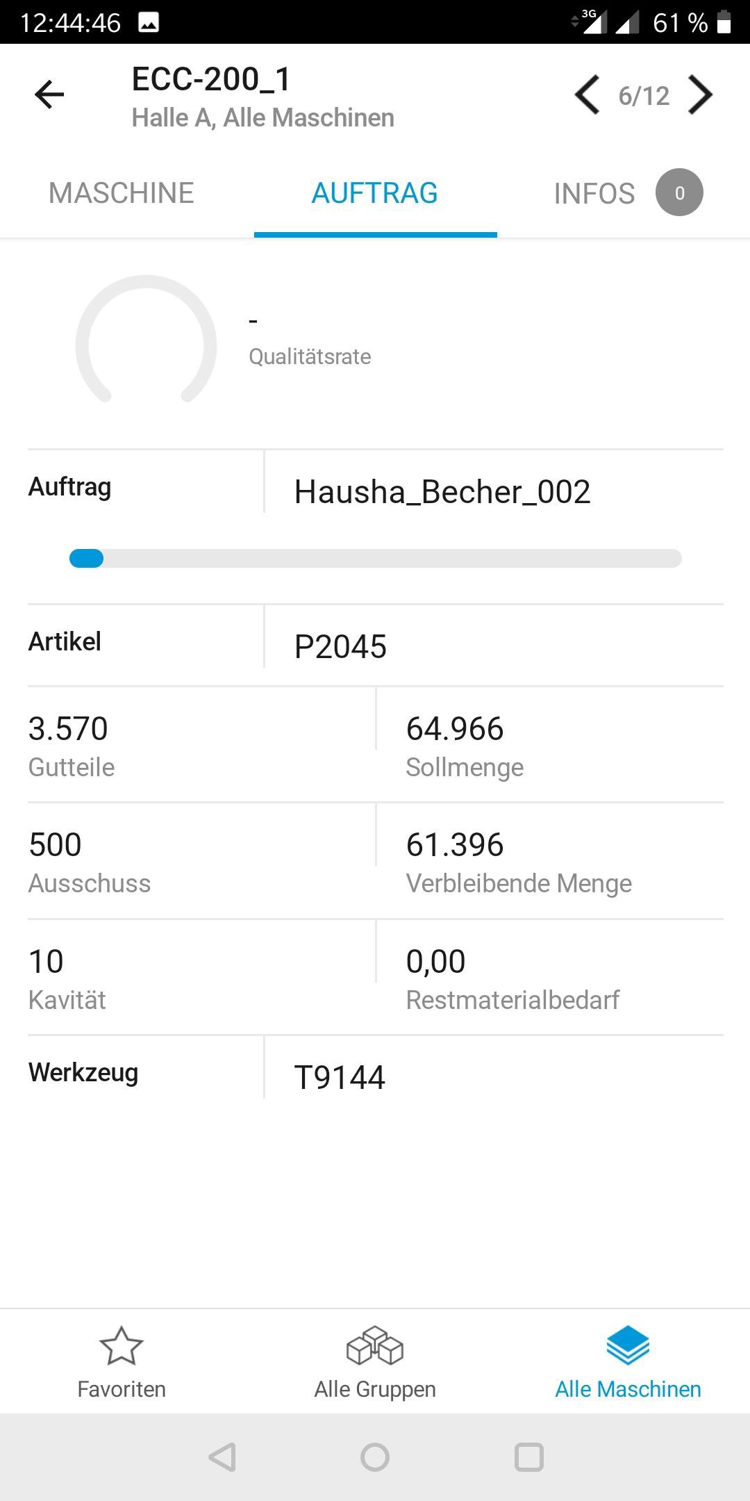 •Anzeige des laufenden Auftrags an jeder einzelnen Maschine inkl. Sollmenge, Produktionsfortschritt (Gut- und Schlechtmengen) und geplanter Restzeit