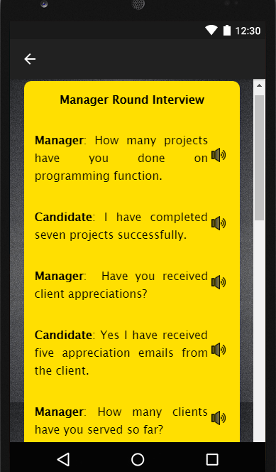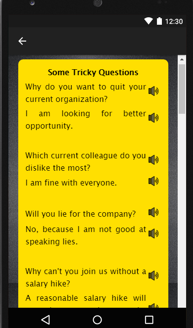 * The app also gives knowledge about tricky questions you can face during an interview in English.