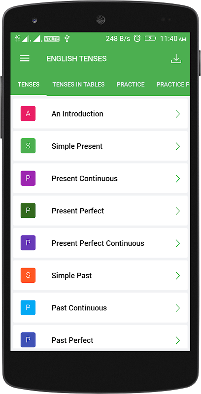Diese App hilft Ihnen, die Tenses der englischen Sprache in einem sehr einfachen und effektiven Weg zu lernen. Alle Themen in dieser App sind in der Tiefe und auf einfachste Art und Weise bedeckt.