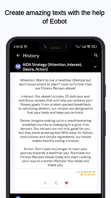 Mit Eobot können Sie Urheberrechte erstellen, Texte zusammenfassen, in andere Sprachen übersetzen, vollständige Beiträge für Ihre sozialen Netzwerke erstellen und sogar Texte für Anzeigen erstellen - alles mit Hilfe unserer Spitzentechnologie. Wenn Sie ein Content-Ersteller sind, wird Eobot Ihr bester Freund sein! Generieren Sie Ideen für YouTube-Videos und erstellen Sie vollständige Skripte in Sekundenschnelle, um kostbare Stunden zu sparen.