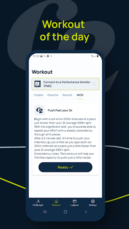 - Stellen Sie das Concept2 Workout of the Day mit einem einzigen Fingertipp auf dem Monitor ein.
