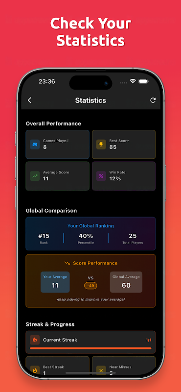 Trete gegen dich selbst an: Verfolge deine Highscores, strebe nach persönlichen Bestleistungen und meistere die Kunst der Geschwindigkeit und Genauigkeit.
