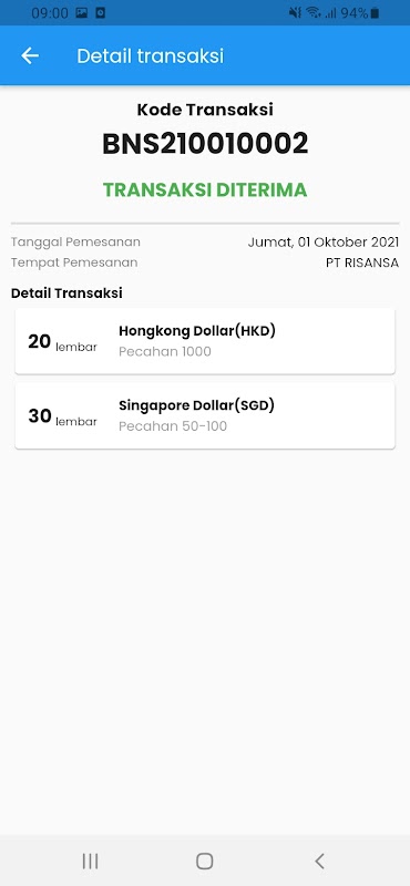 Exchange Message-Anwendung für den Währungsumtausch an einen zertifizierten Geldwechsler