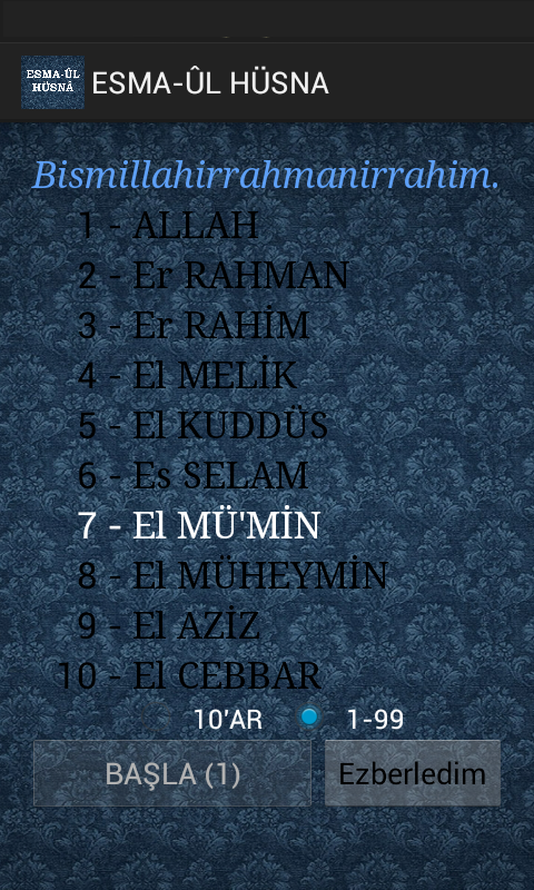 Allah ın (c.c.) güzel isimlerini okuyarak ezberlemenize yardımcı olmak üzere yazılmış uygulamadır.