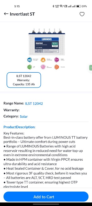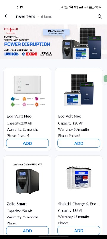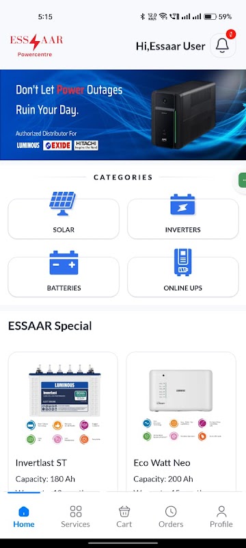 Essar ist eine umfassende Plattform, die sich der Bereitstellung hochwertiger Batterien, Wechselrichter, Online-USV-Systeme und Solarprodukte widmet und gleichzeitig zuverlässige Dienstleistungen und Lösungen anbietet, um den effizienten Betrieb Ihrer Energieinfrastruktur zu gewährleisten. Ganz gleich, ob Sie auf der Suche nach energieeffizienten Produkten oder einer zeitnahen Wartung sind, Essar ist so konzipiert, dass es alle Ihre Anforderungen an das Energiemanagement problemlos erfüllt.