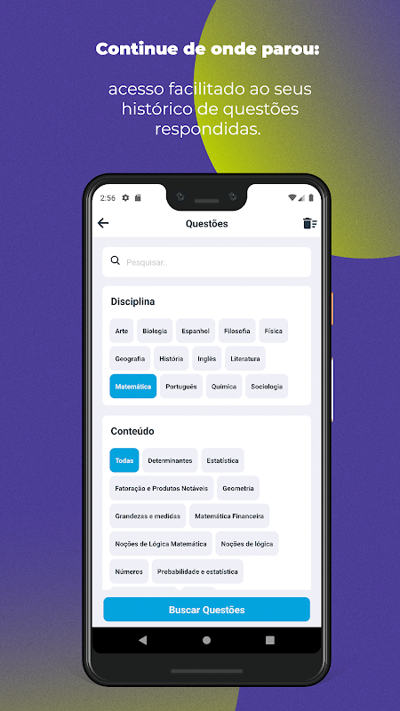✔️Tests: Laden Sie Tests von Enem und verschiedenen Hochschulen als PDF herunter, um sie auf Papier oder auf der Plattform zu trainieren und eine vollständige Korrektur zu erhalten;