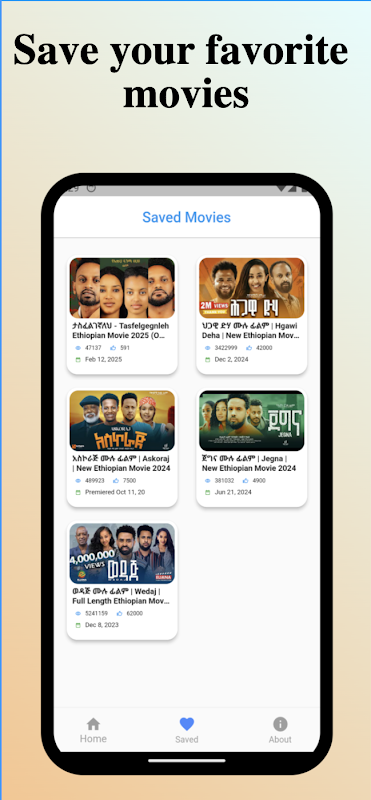 - Klassische und moderne Filme: Sehen Sie sich zeitlose Klassiker und die neuesten äthiopischen Filme an.