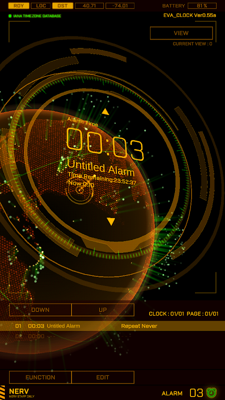 Sci-Fi-Stil Wecker (Evangelion-Stil), Es könnte sowohl die aktuelle Zeit als auch den GPS-Standort anzeigen.