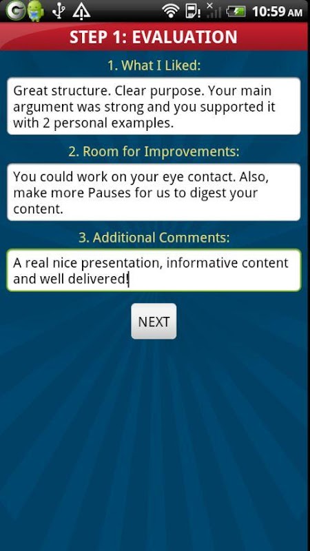 This app allows you to very quickly evaluate a speech, presentation or performance.
