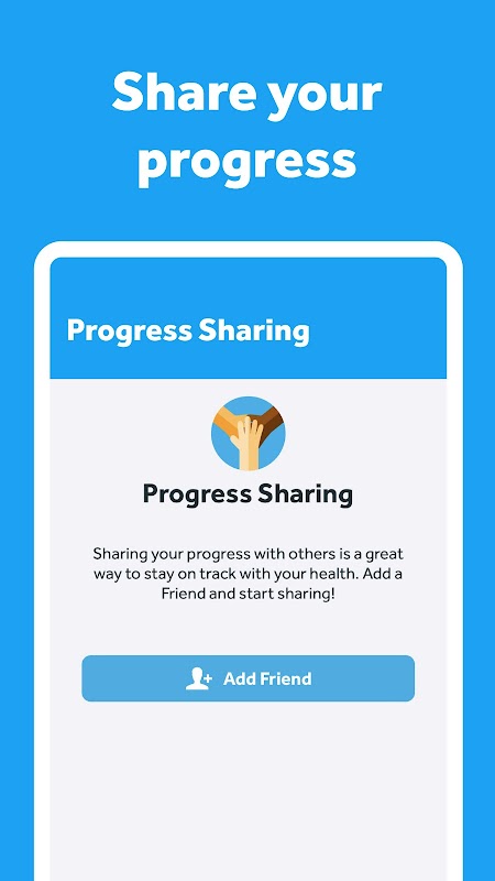 Der Umgang mit Ihrer Gesundheit ist kein Solo-Abenteuer! Fügen Sie Freunde hinzu und richten Sie eine Fortschrittsfreigabe ein, um Ihre Lieben über Ihre Gesundheit auf dem Laufenden zu halten.