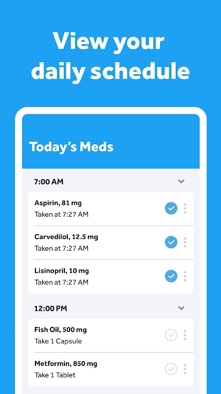 • Planen Sie ganz einfach Erinnerungen für Medikamente, Vitamine und Nahrungsergänzungsmittel