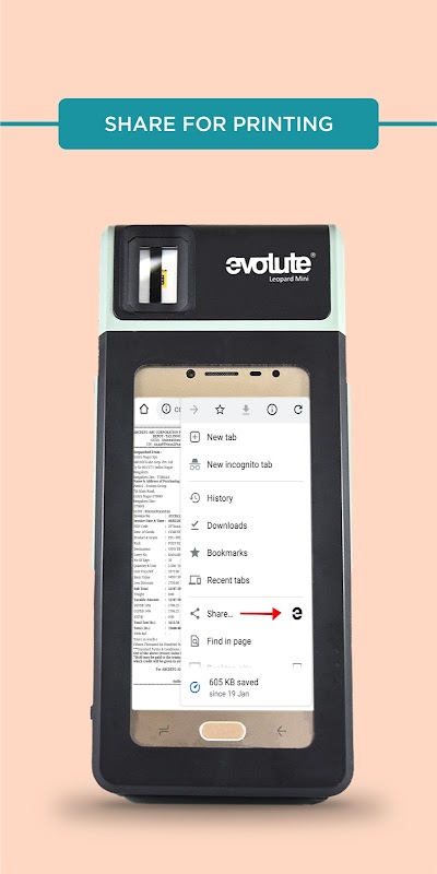 Evolute Print Service ist die Go-to-Print-Lösung für Evolute-Geräte. Mit dieser App können Sie jedes Dokument oder Layout Ihrer Wahl in Evolute-Geräten mit einem Thermodrucker drucken.