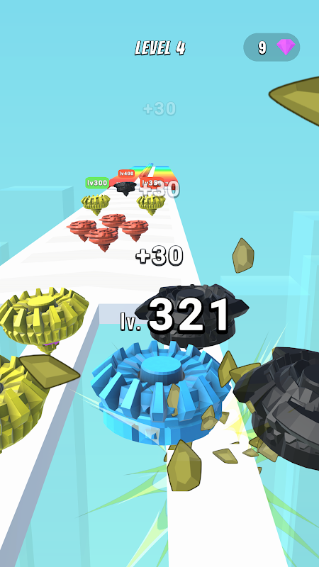 Besiege Feinde, die schwächer sind als du, um deinen Spinner zu entwickeln.
