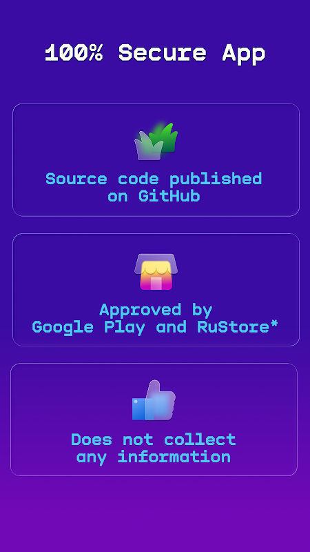 *Genehmigt von Google Play und Rustore – dies bedeutet, dass die Anwendung auf diesen Plattformen veröffentlicht ist und nicht gegen deren Richtlinien verstößt.