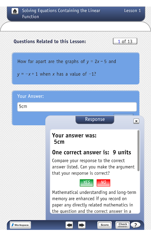 Die "Überprüfung in Vorbereitung für College Algebra" Serie besteht aus vier (4) Anwendungen und verfügt über 39 Embedded-Unterricht. Da die Primär Funktionsweise des Gehirns Muster Verallgemeinerung, die fast alle der Lektionen werden als Muster-Building-Aktivitäten strukturiert. Benutzer werden aufgefordert, die Muster mit Papier und Bleistift zu verallgemeinern (so dass das Gehirn sieht das größere Bild), denn wenn sie es tun, schafft das Gehirn eine Erinnerung an die Muster und die verallgemeinerte Algebra in der Lektion versteht. Die Apps Funktion nutzen auch als Grundthema, das mitgelieferte Algebra beibringen. Wenn Benutzer eine Verbindung neue algebraische Konzepte auf bestehende langfristige Erinnerungen an zuvor gelernte Algebra, das Gehirn versteht das neue Konzept oder Verfahren in der Lektion. Funktion Darstellung und Funktion Verhaltensweisen verbinden alle der Algebra. Der Unterricht besteht aus offene Fragen, und wenn der Benutzer eine Frage beantwortet, kann er / eine richtige Antwort und verbales Lob, wenn korrekte erhält sie.