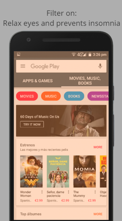 Filter ● dem Bildschirm in der Nacht die Farbtöne zu vermeiden, die zu Schlaflosigkeit