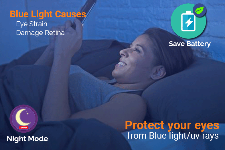 Blaue Strahlen vom Bildschirm können Ihren Tagesrhythmus stören und Ihren Schlaf- und Nachtlesemodus beeinträchtigen. Mit Hilfe unseres Bildschirmdimmers für die Nacht zur Augenpflege können Sie jedoch das Schlaflicht durch die Verwendung von Filter-Warmlicht angenehm erleben. Mit unserem Bildschirmfilter für die Augenpflege (iPhone-Schutz oder iPhone-Schutz) schützen Sie Ihr Auge, indem Sie die Helligkeit des Bildschirms an die natürliche Farbe anpassen, indem Sie schädliche Strahlen verhindern (UV-Schutz).
