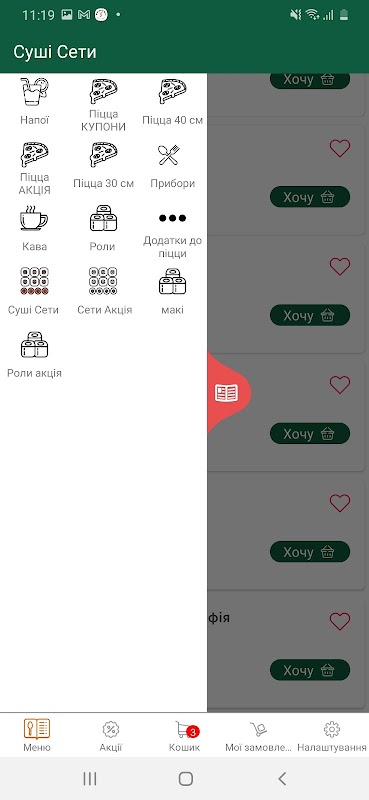 Service der schnellen Lieferung von Sushi und Pizza in der Stadt Riwne