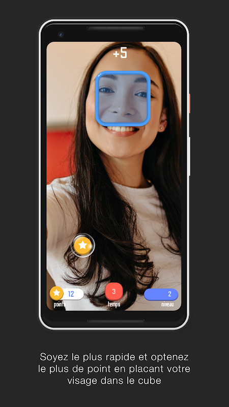 Le but du jeu est d'aligner votre visage (vos yeux) au centre du cube pour pouvoir avancer et gagner des points.