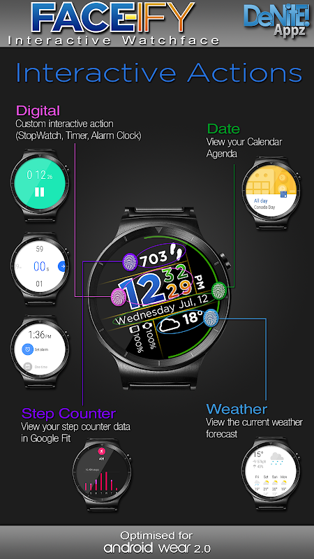 Watch Face Widget & Live Wallpaper - Batterie, Datum, Wetter, Schrittzähler