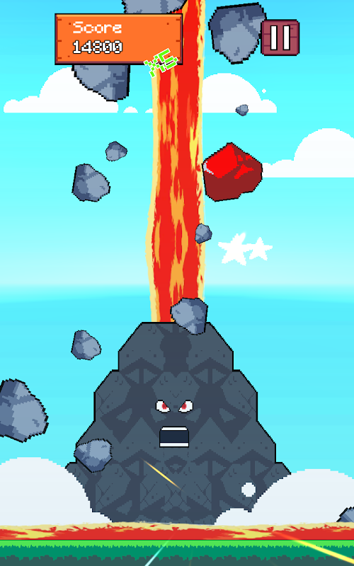 Your task is to save all the chickens without waking up the big volcano, to prevent the bombs from falling, if the bomb is activated, the big volcano will wake up, when revenge will throw a few stones at you, do not let the red stones reach the floor.