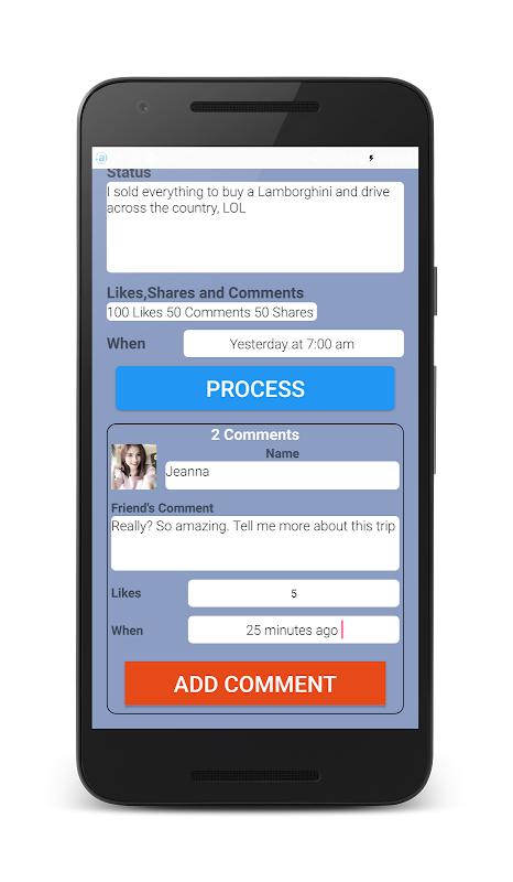Do you want create funny status with fake likes and fake comments like picture below?