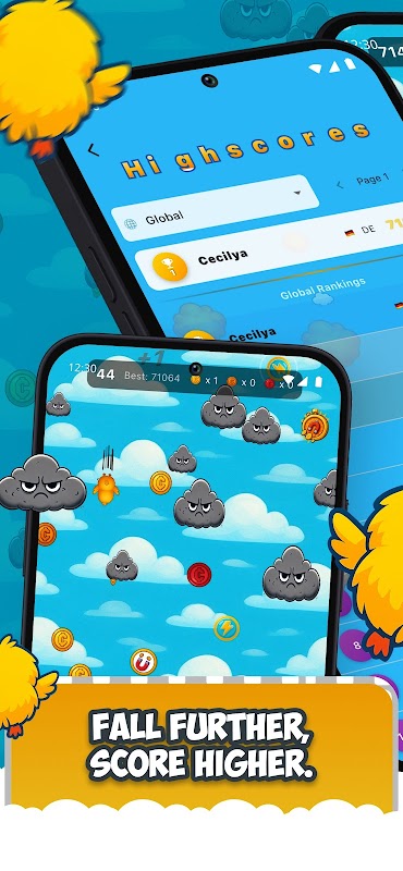 Lade „Falling Birds – Ein Flappy-Spiel“ herunter, tippe zum Gleiten und schau, wie weit du fallen kannst. Schlage deinen Highscore, teile deinen Freundescode und trete weltweit gegen andere an!