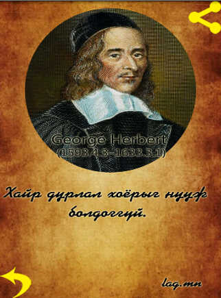 This app is only for Mongolian. It's famous quotes app. Aldartai humuusiin helsen mergen ugsiig unshij, erch huch avch, tarhia tsenegleh app.