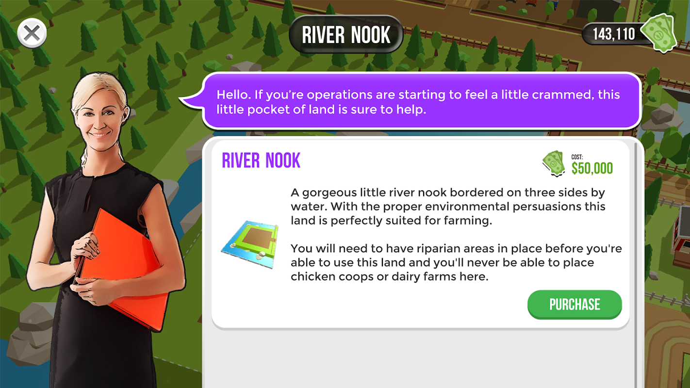 Jetzt kannst du deinen eigenen nachhaltigen Bauernhof gründen und verwalten. Bewirtschafte deine Felder, züchte Tiere und stelle Waren her, um sie in deiner Gemeinde zu tauschen, zu verkaufen und zu spenden. Dabei achtest du auf die drei Säulen der Nachhaltigkeit – Umwelt, Wirtschaft und Soziales.
