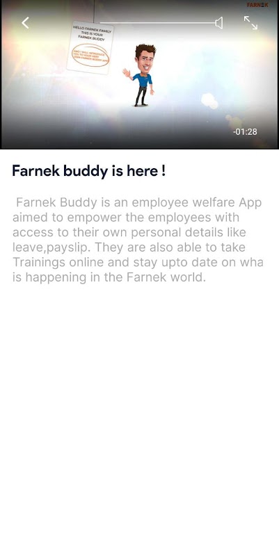 Farnek Buddy ist eine Wohlfahrts-App für Mitarbeiter, die darauf abzielt, den Mitarbeitern den Zugriff auf ihre eigenen persönlichen Daten wie Urlaub und Gehaltsabrechnungen zu ermöglichen. Sie können auch online an Schulungen teilnehmen und sich darüber auf dem Laufenden halten